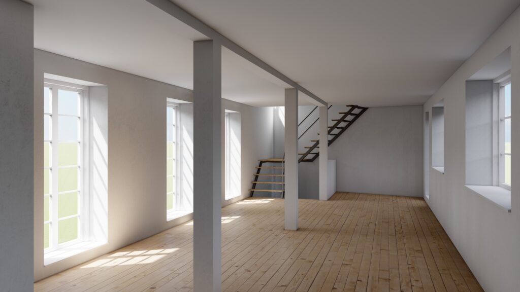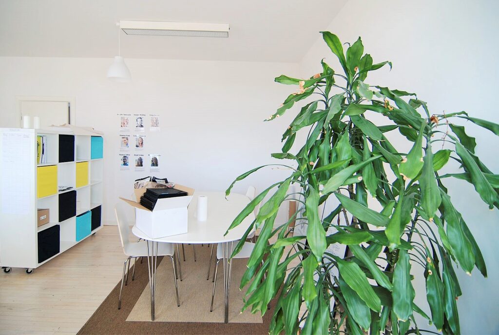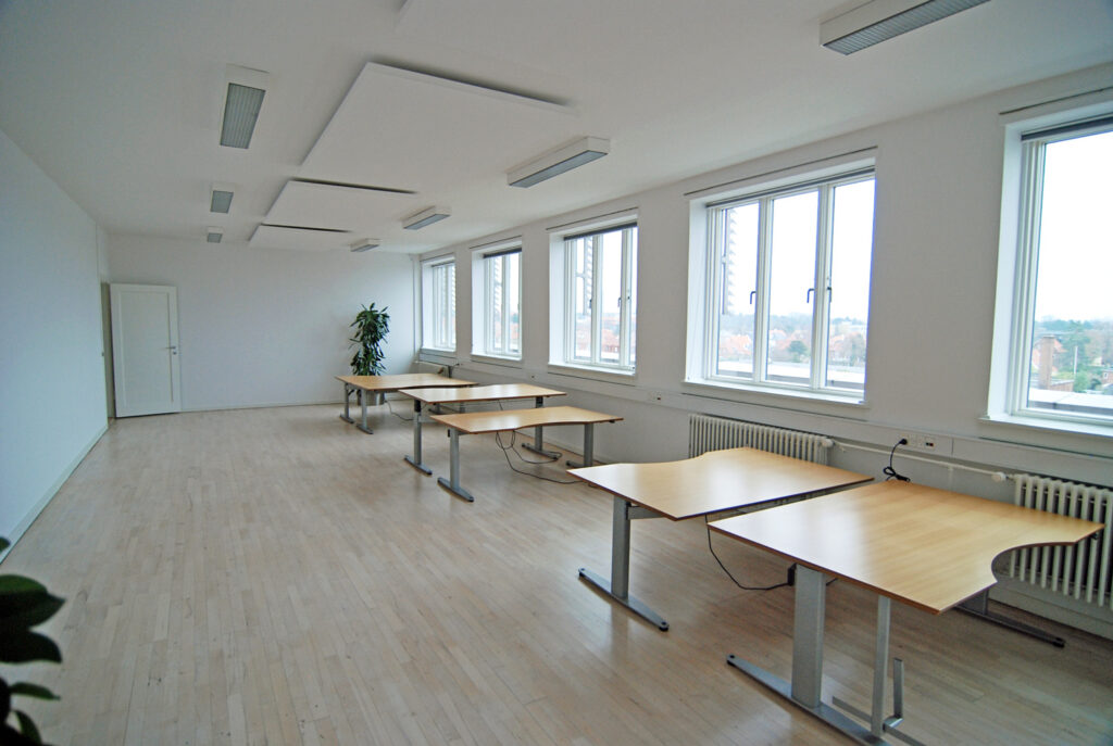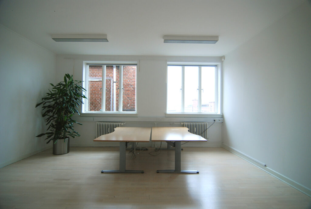 Dejligt, lidt privat hjørnekontor, som arkitektonisk er begunstiget med en fin udsigt mod vest, uden direkte generende eftermiddagssol i computerskærmene.